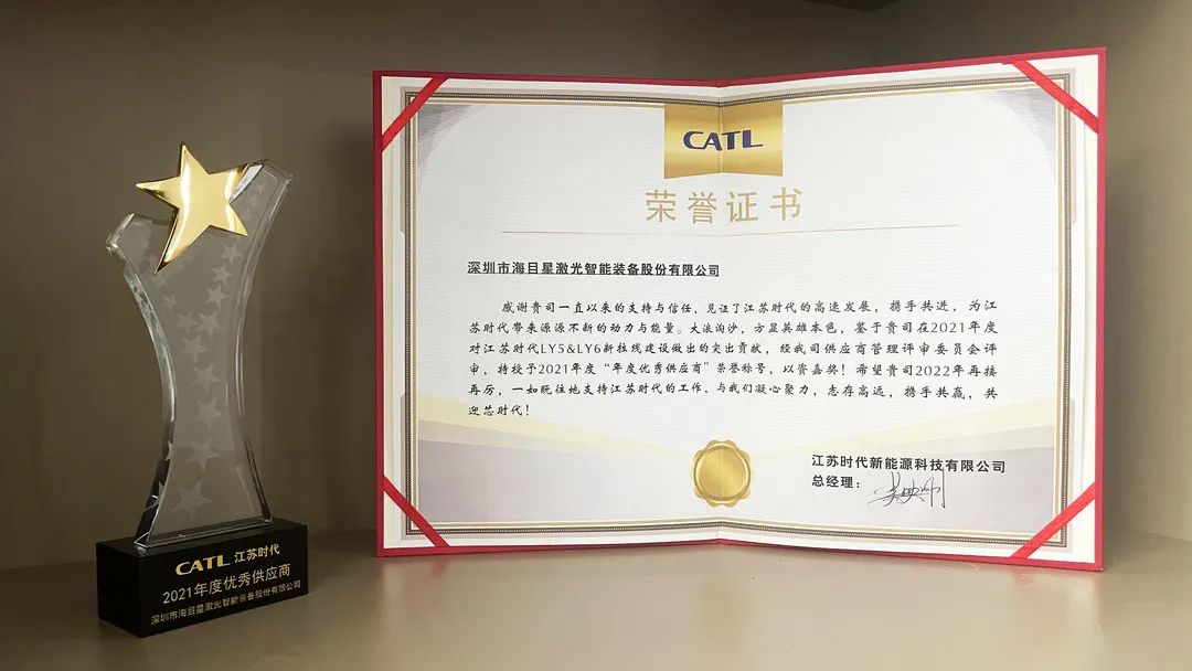 再添榮耀 | 海目星喜獲江蘇時(shí)代“2021年度優(yōu)秀供應(yīng)商”