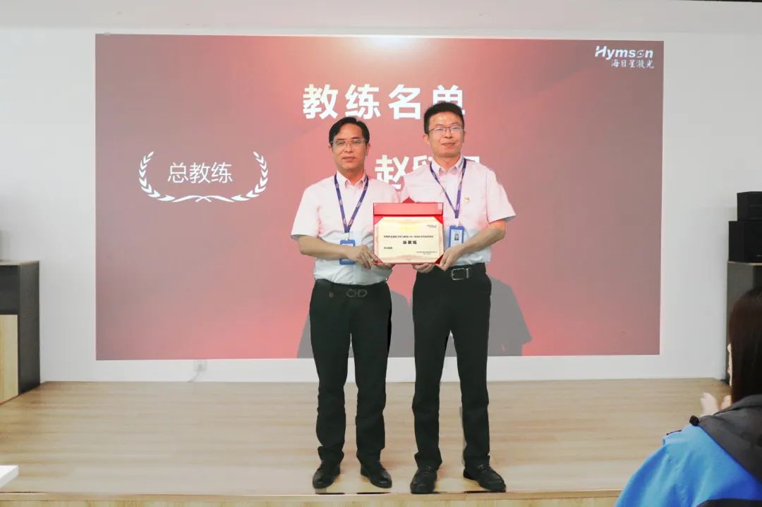 為更好地助力學(xué)員學(xué)習(xí)轉(zhuǎn)化,本次訓(xùn)練營(yíng)特選定5位教練全程陪伴賦能。他們分別是:總教練—江蘇海目星副總經(jīng)理趙留強(qiáng);專業(yè)教練—LEBG第二事業(yè)部華東供應(yīng)鏈李文標(biāo)、李文良、瑞,光伏事業(yè)群廖雪飛。周總、楊總分別為5位教練頒發(fā)聘書。一紙聘書代表的是一份責(zé)任,教練們將在后期的學(xué)習(xí)中全力給予指導(dǎo)與支持。