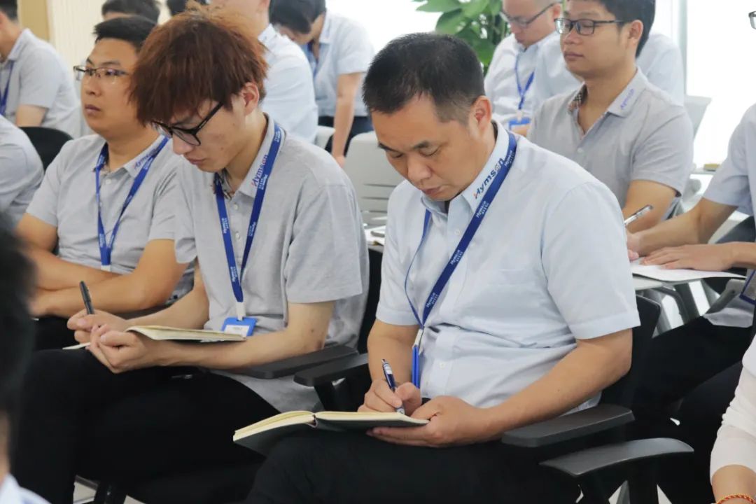 對(duì)于本次學(xué)習(xí)項(xiàng)目,江蘇海目星各級(jí)領(lǐng)導(dǎo)高度重視。早上8點(diǎn)30分,江蘇海目星總經(jīng)理周逸、人力資源部總經(jīng)理?xiàng)铥惥?/span>江蘇海目星副總經(jīng)理趙留強(qiáng)及各生產(chǎn)部門經(jīng)理、主管等公司領(lǐng)導(dǎo)與常州班全體學(xué)員共計(jì)140余人,齊聚常州基地行政樓培訓(xùn)室參加開營(yíng)儀式。