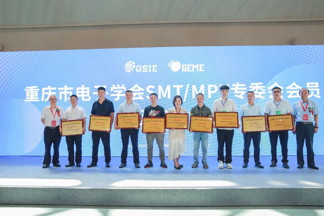 本屆博覽會(huì)同期舉辦了“GEME 2022電子產(chǎn)業(yè)鏈創(chuàng)新發(fā)展大會(huì)”,匯聚智造精英,共同為電子產(chǎn)業(yè)熱點(diǎn)話題展開交流。會(huì)上,重慶市電子學(xué)會(huì)表面貼裝與微組裝技術(shù)委員會(huì)為深圳市海目星激光智能裝備股份有限公司授會(huì)員單位牌匾。